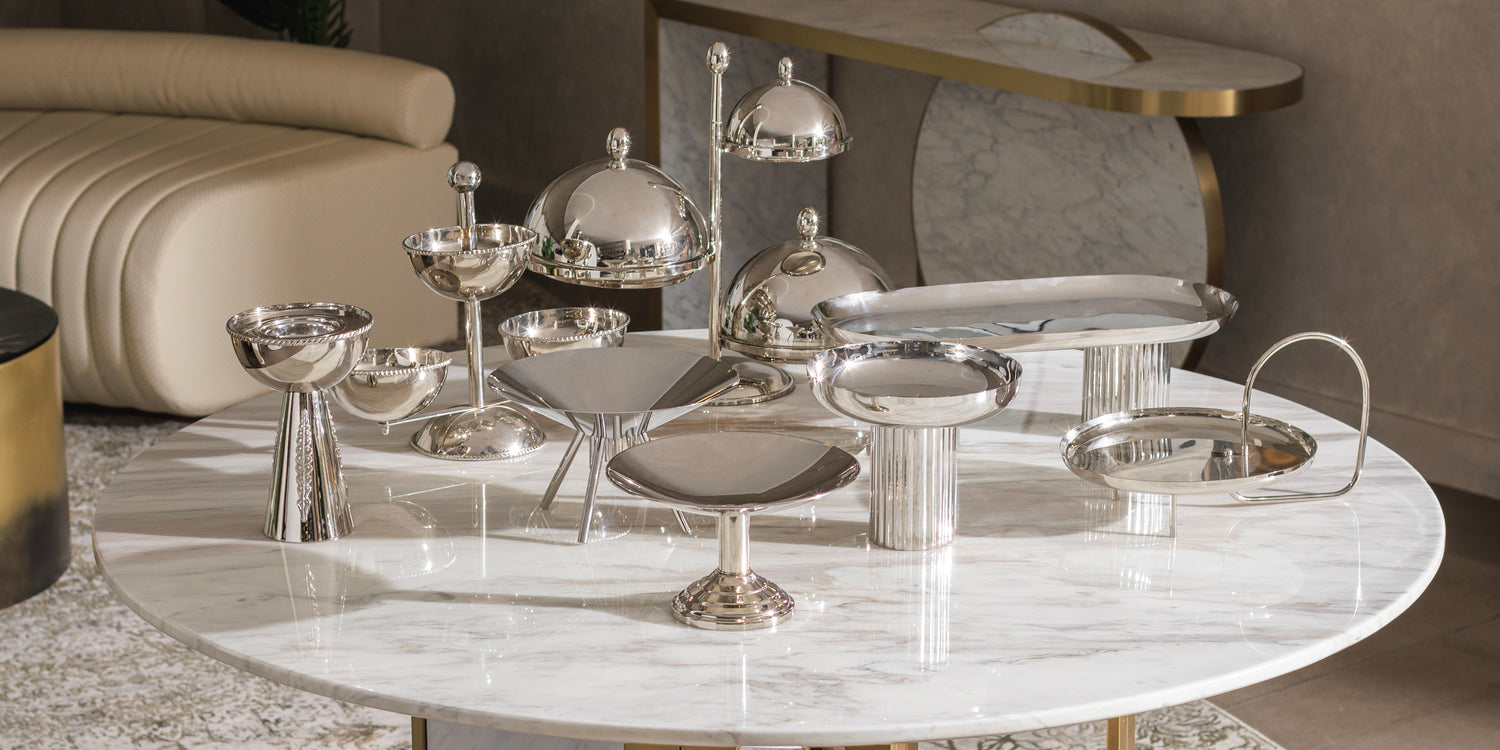 وعاء معدني دائري أنيق مع قاعدة – فضي