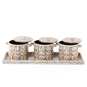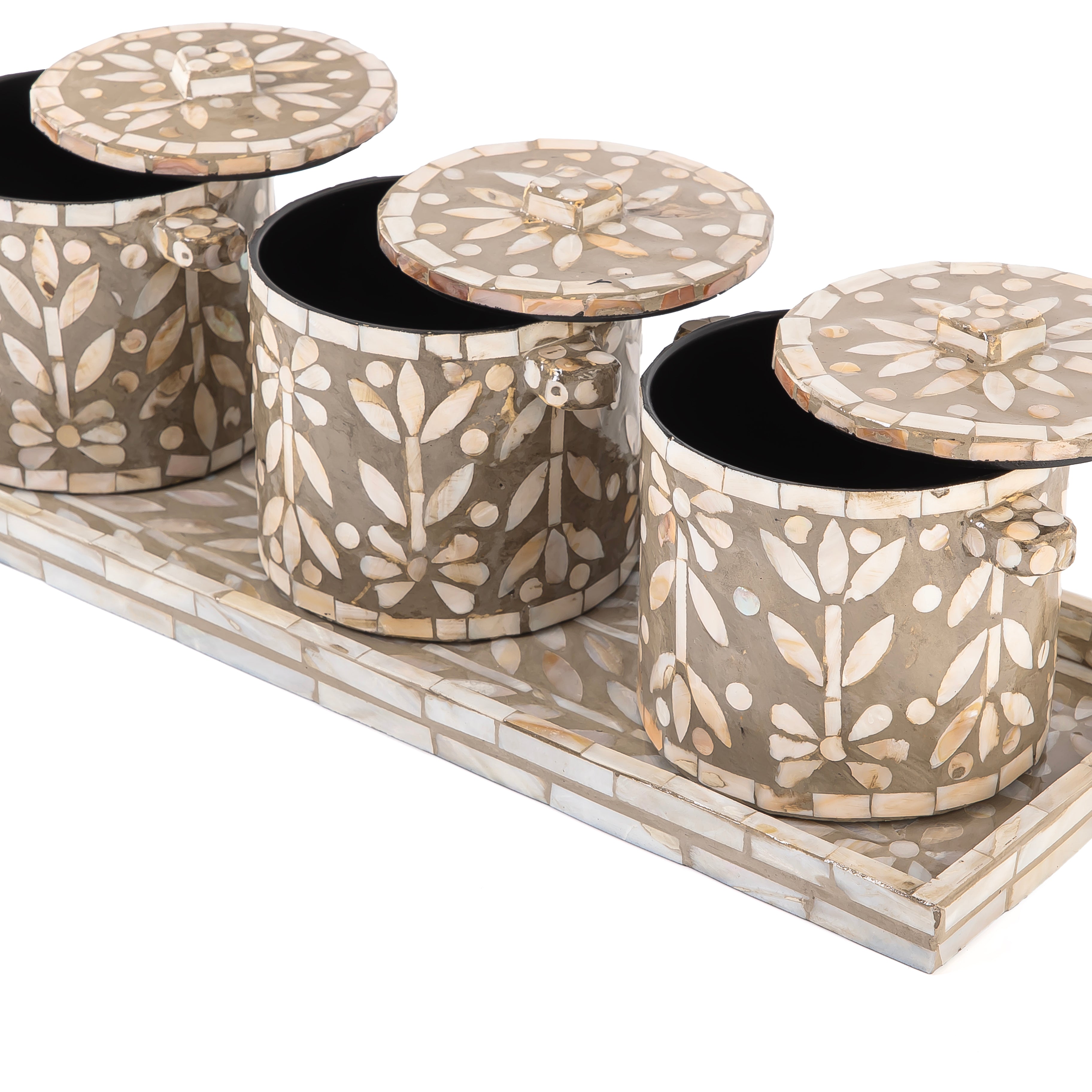 Set of 3 Mother of Pearl Jars with Lids and Serving Tray