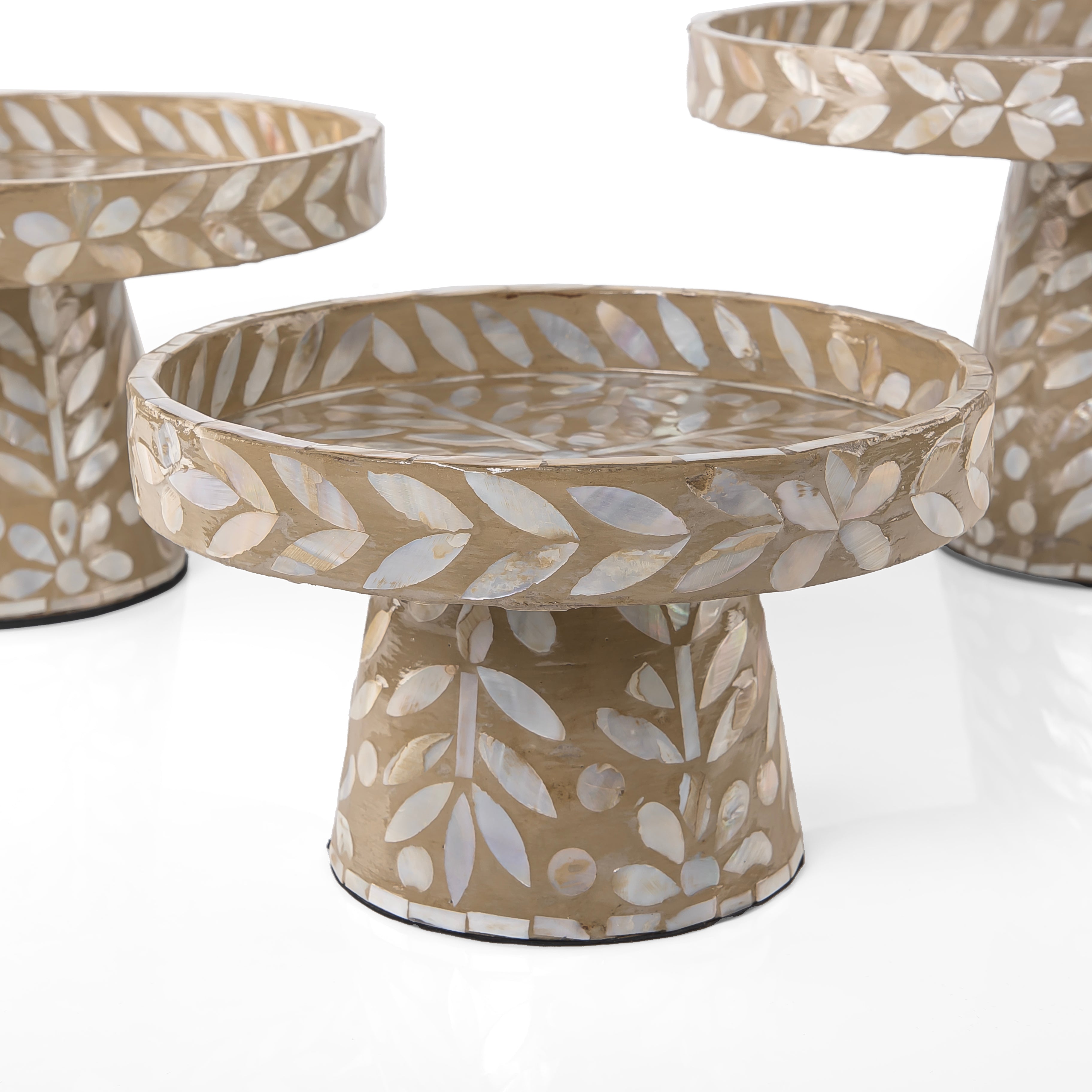 Home Set of 3 Round Mother of Pearl Serving Stands