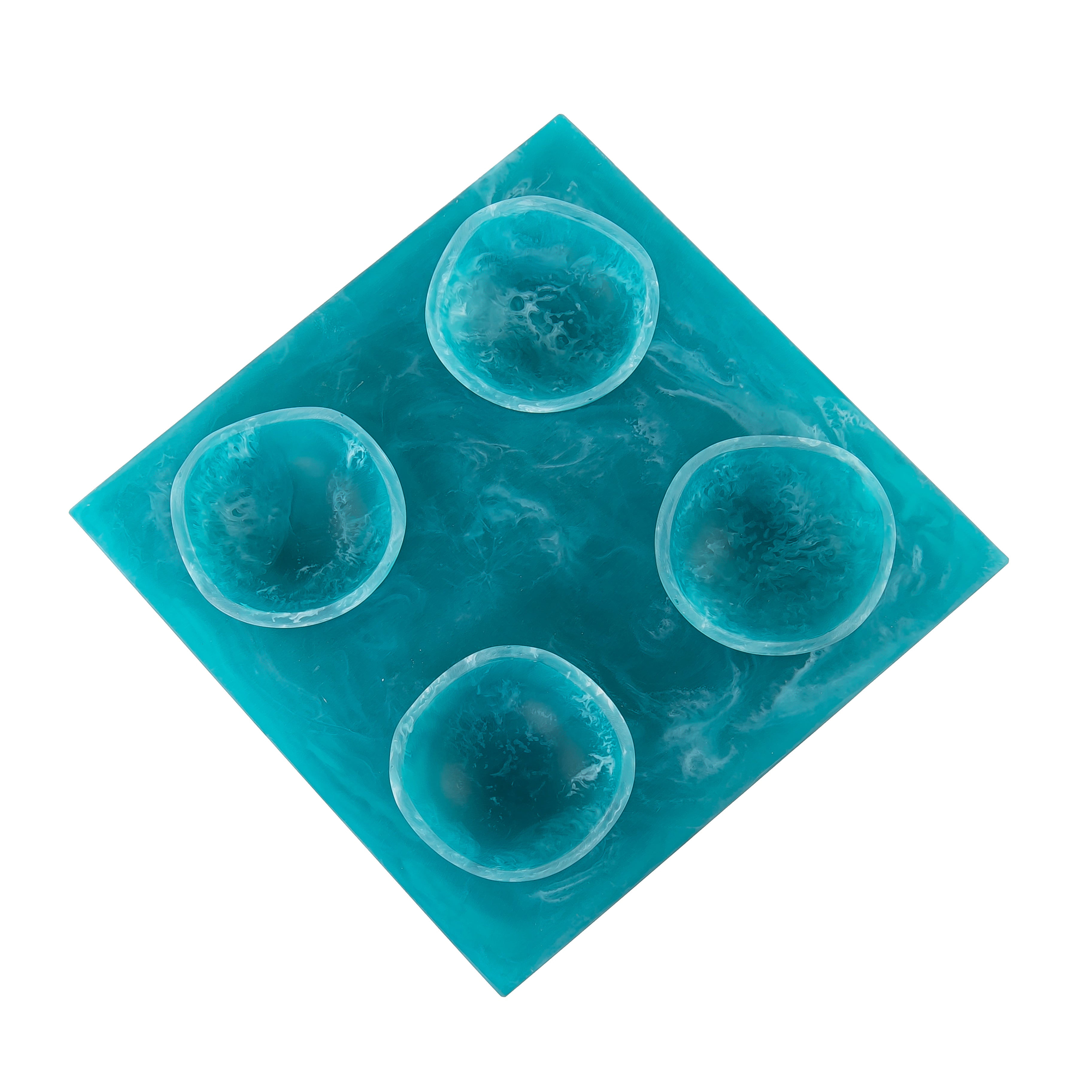 A serving set consisting of 4 resin bowls paired with a square-shaped tray, offering a minimalist design for versatile uses.