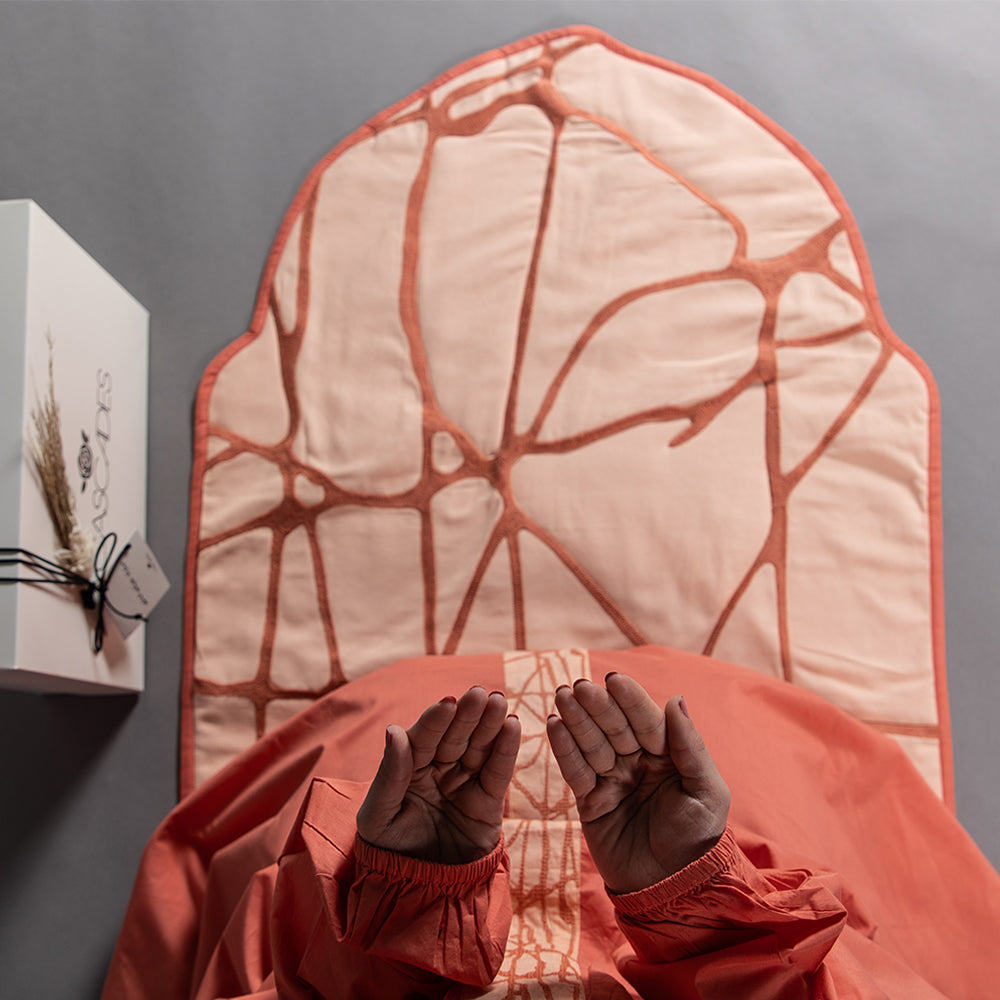 Premium prayer set made entirely from 100% cotton, featuring a comfortable prayer dress & prayer mat. The set is thoughtfully designed to provide comfort and tranquility during prayer, with delicate external embroidery adding a touch of serene beauty.