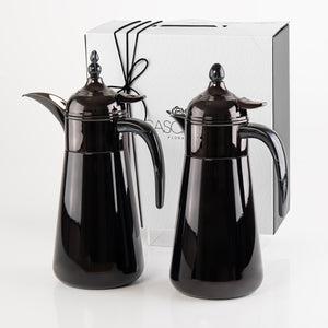 Elegant Set Of 2 Stainless Steel 1 liter Thermos Flask With Gift Box - Black