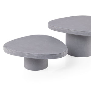 Set of 2 Leather Covered Wooden Stands with Cylindrical Bases - Light Grey