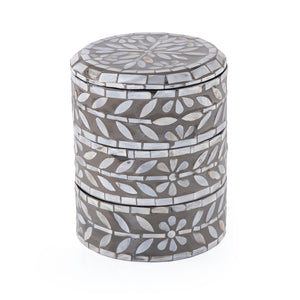 3-Story Mother of Pearl Multi-Layer Box with Lid - grey