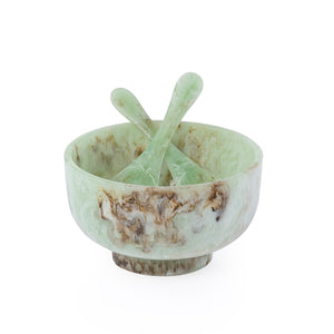 Resin Serving Bowl with 2 Spoons - Green