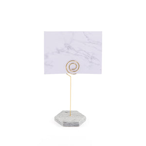 Home Hexagonal marble card stand with a golden steel column