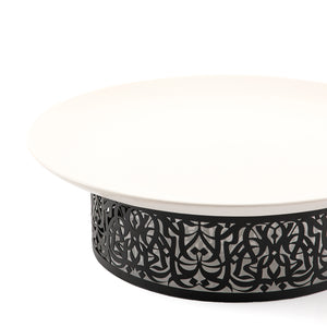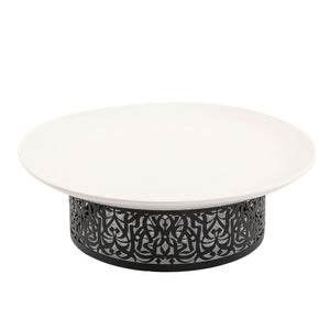 Flat Round Ceramic Dish with Metal Base Featuring Arabic Calligraphy Decorations -Large