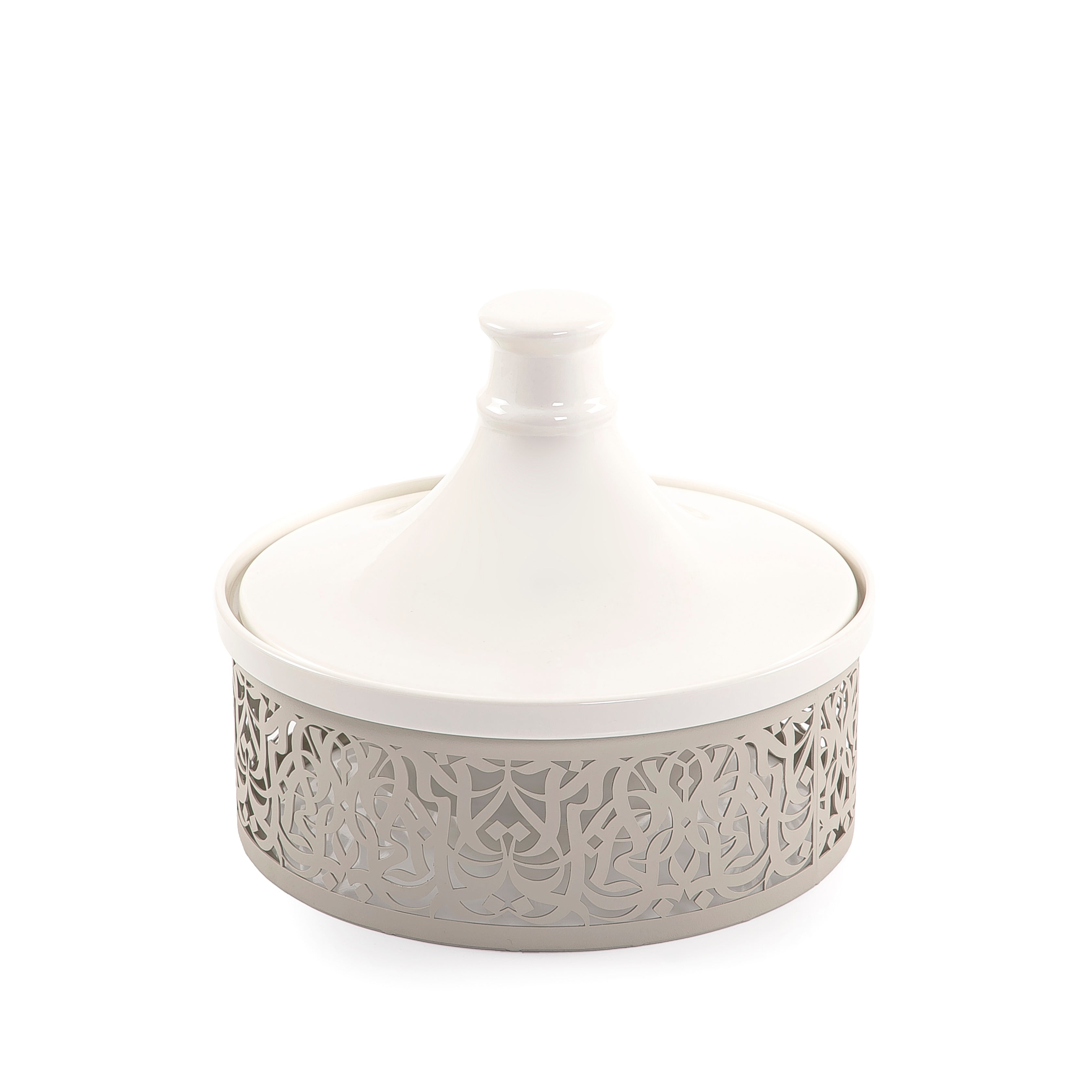 Chose the option: Ceramic Dish with Conical Lid and Calligraphy Metal Base