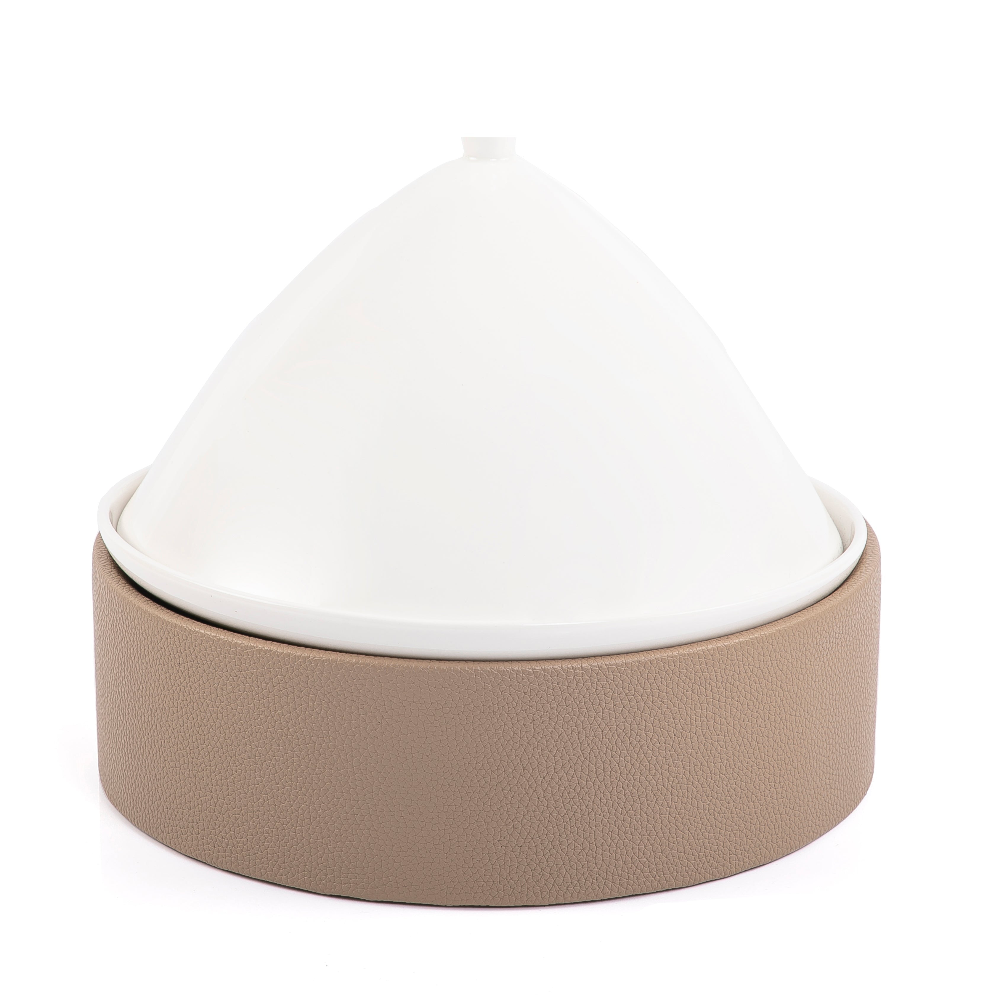 Round Ceramic Dish with Cone-Shaped Cover and Leather Base - Large
