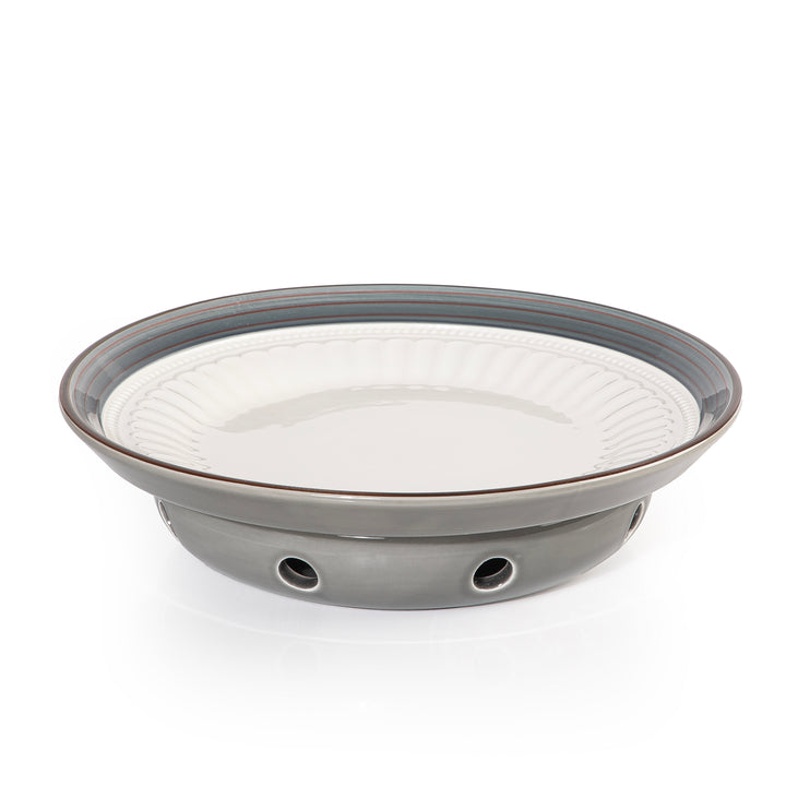 Elegant ceramic plate with a practical stove stand , perfect for serving hot dishes while keeping them warm. A beautiful and functional piece that adds a touch of sophistication to your dining experience.