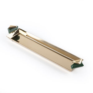 Long Metal Serving Tray Gold & Green - Small