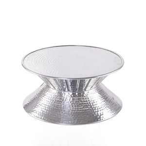 A dual-sided serving dish made of hammered aluminum, featuring a transparent Acrylic cover with a shell handle.