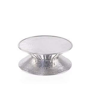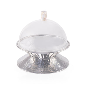 A dual-sided serving dish made of hammered aluminum, featuring a transparent Acrylic cover with a shell handle.