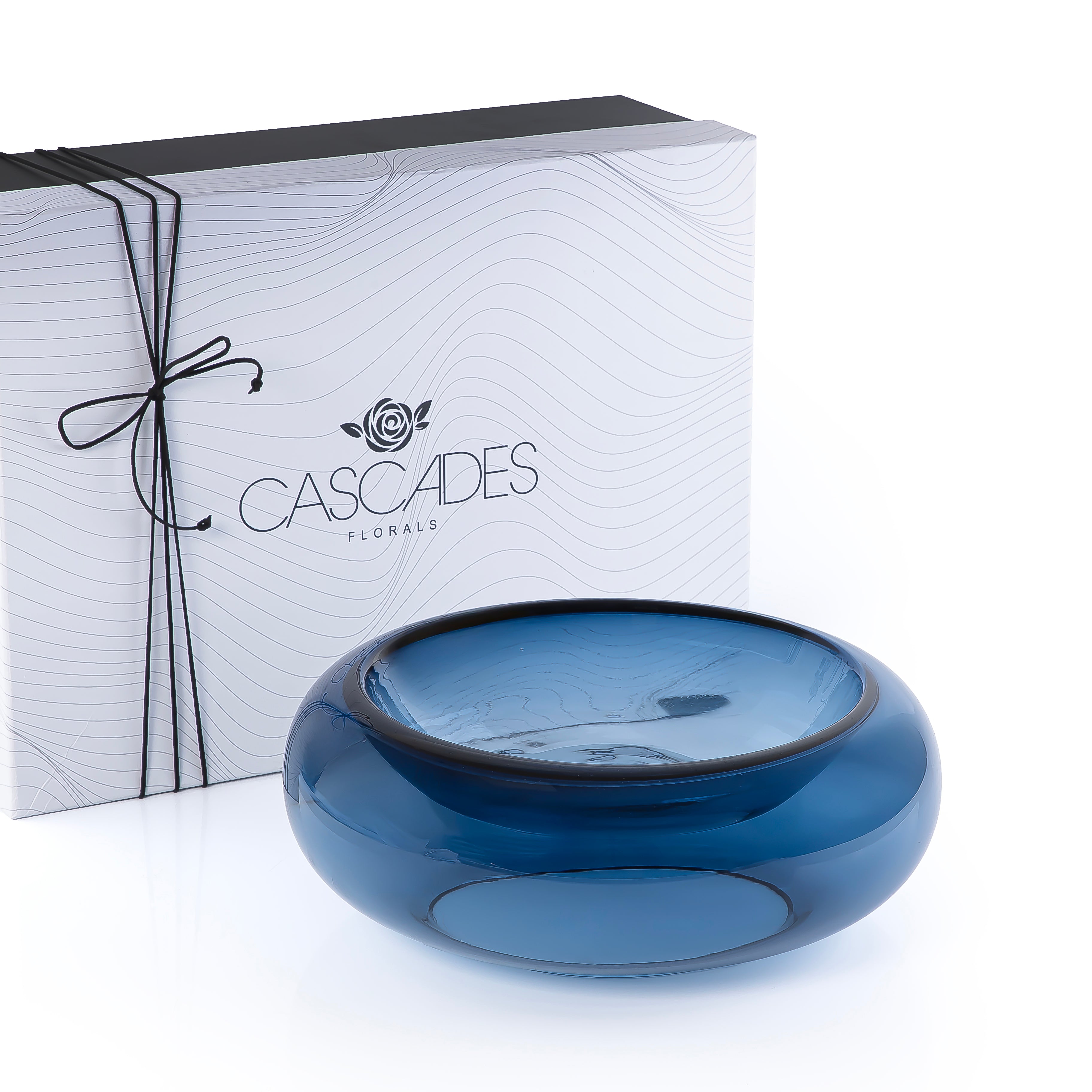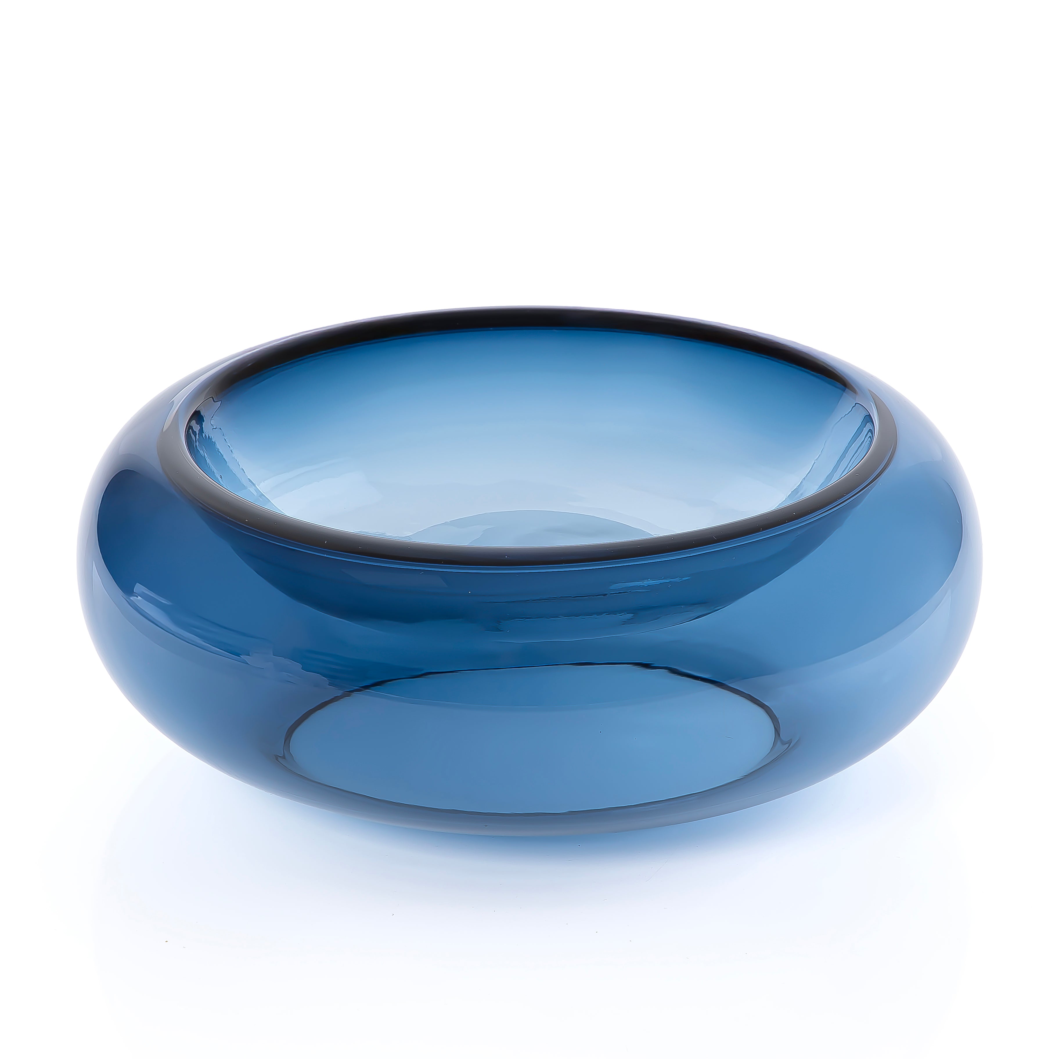 Elevate your table setting with this elegant blue glass serving bowl.