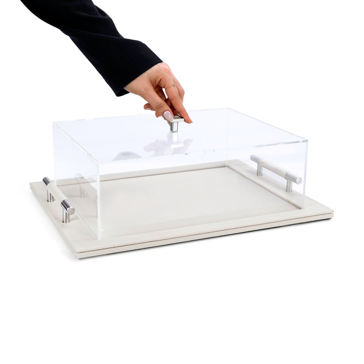 Home Leather Serving Tray Set with Acrylic Cover