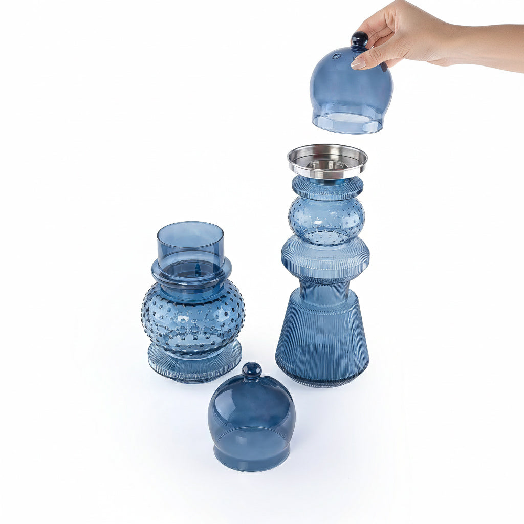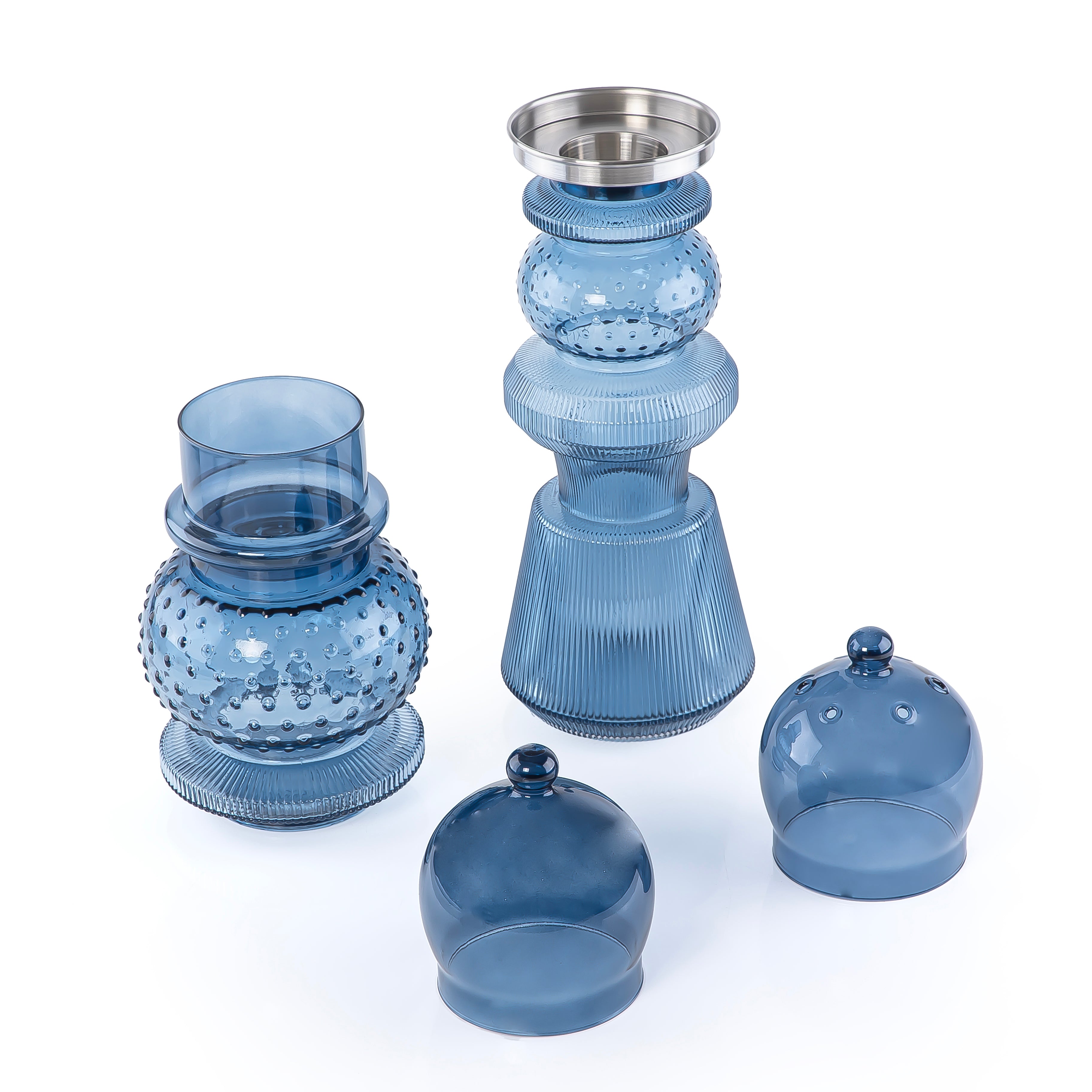 2 Pcs Large Mabkhar Set Glass Holder with Metal Burner & Dome – Blue