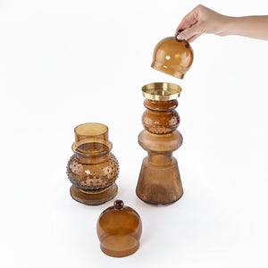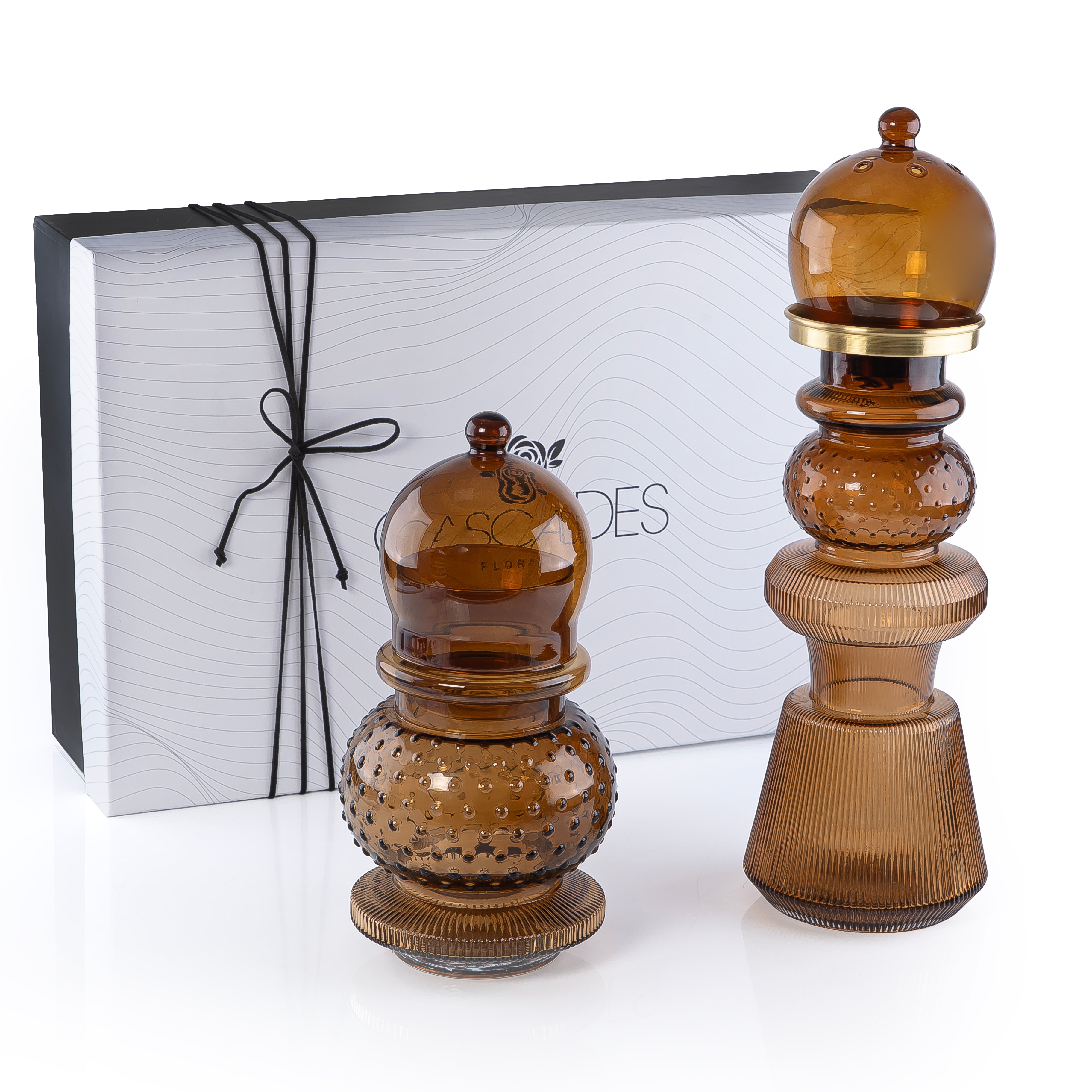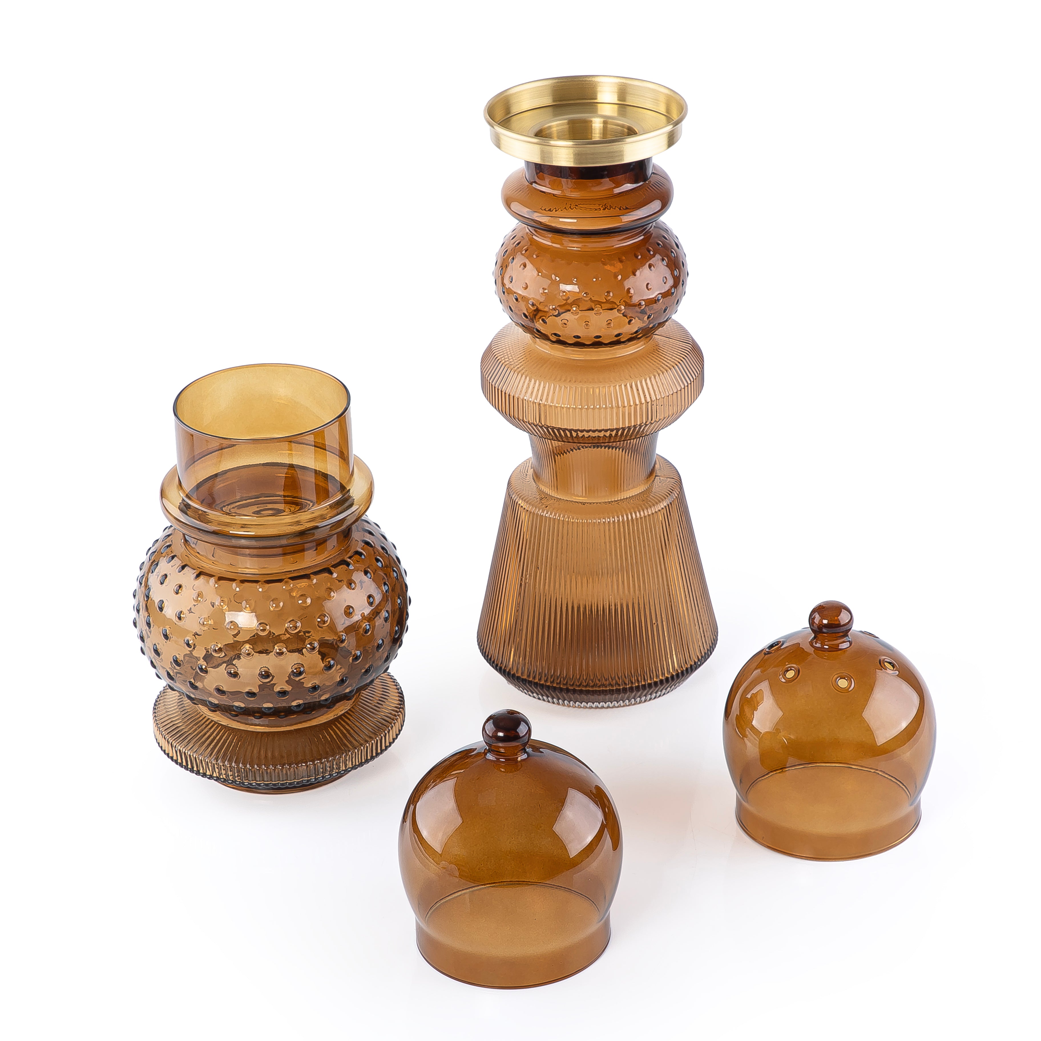2 Pcs Large Mabkhar Set Glass Holder with Metal Burner & Dome – Brown