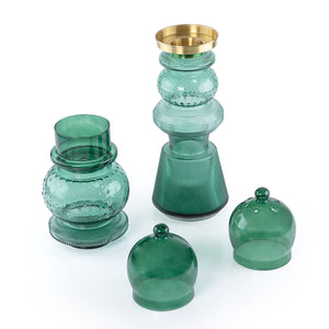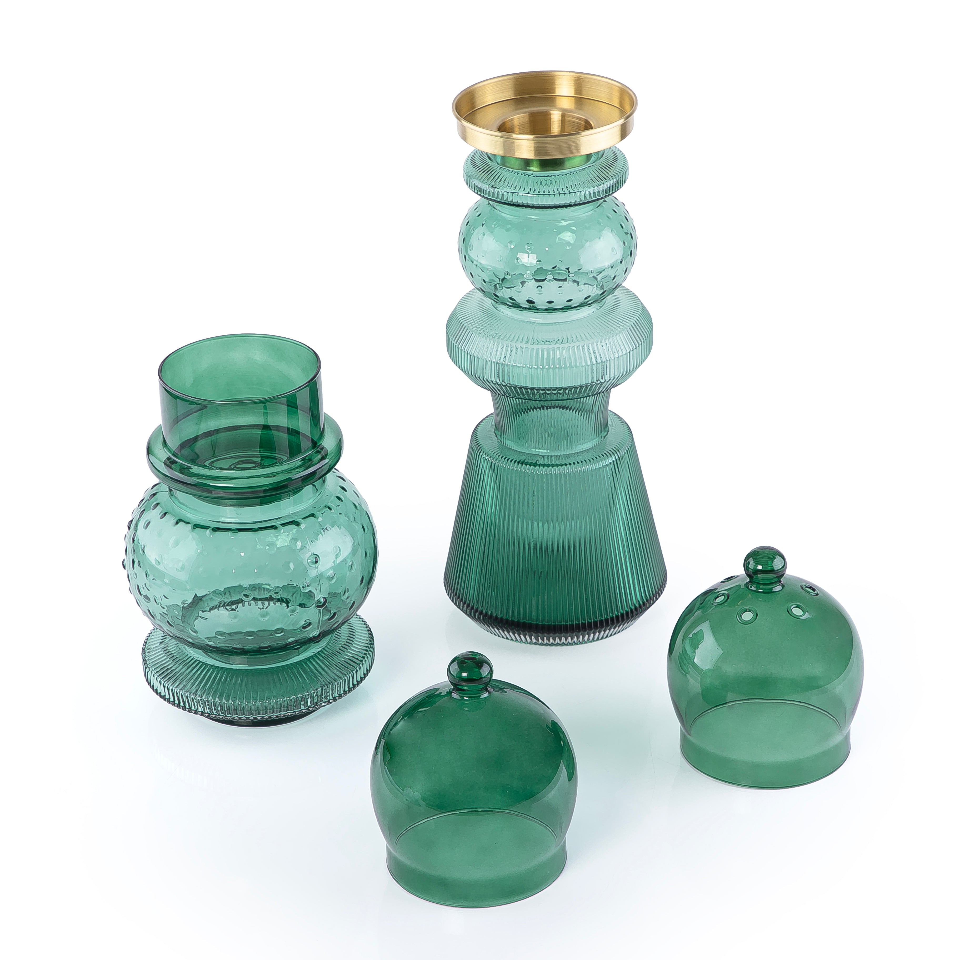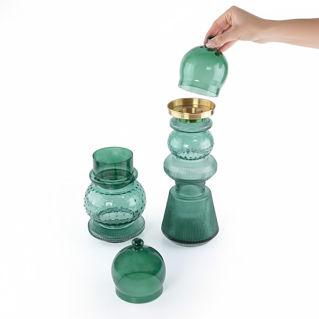 2 Pcs Large Mabkhar Set Glass Holder with Metal Burner & Dome – Green