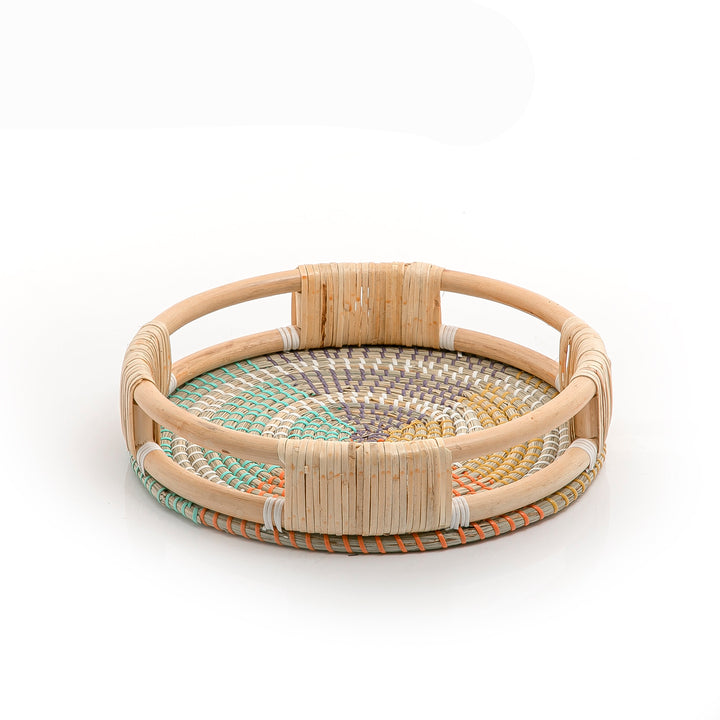 Multicoloured Round Rattan And Bambo And Wood Tray