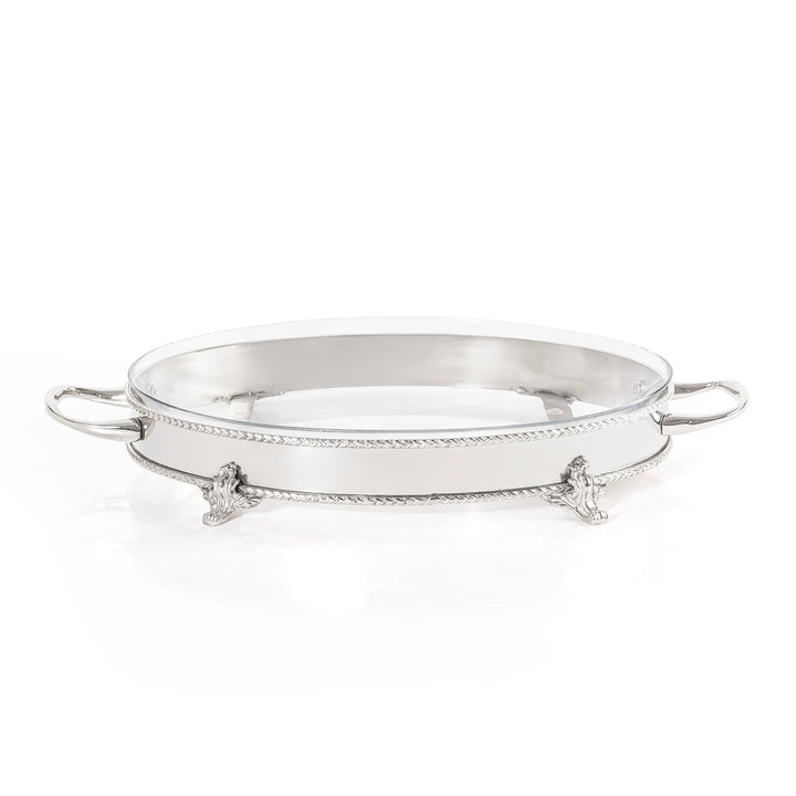 Oval Stainless Steel Serving Stand with Interior Glass Bowl - Large