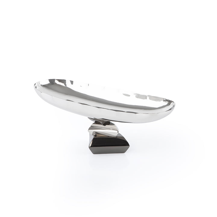 Elegant Metal Oval Serving Dish Silver with Black - Medium