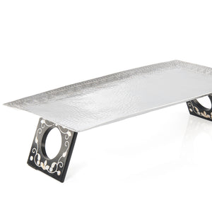 Rectangular Aluminum Serving Tray with Wood and Mother of Pearl Base - Large
