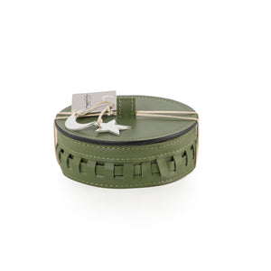 Round Leather Gergean Box with Braided Design and Lid - Medium
