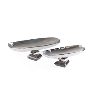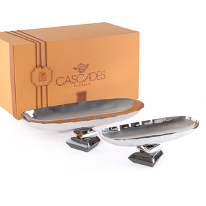 Set of 2 Metal Oval Serving Dish with gift box - Silver & Black