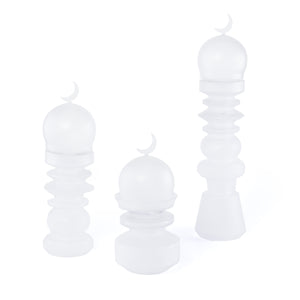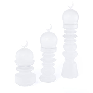Elevate your table setting with this sophisticated glass collection, thoughtfully curated for the discerning host. The set features two elegantly designed minaret-inspired decorative pieces that capture the essence of Islamic architecture, paired with a practical date bowl—perfect for serving dates during Ramadan or as everyday tableware. Crafted in rich white glass, each piece combines aesthetic refinement with functional design. Presented in an attractive gift box, this set makes an ideal present for those who appreciate cultural elegance and quality craftsmanship. A versatile addition to any home that celebrates tradition and style.