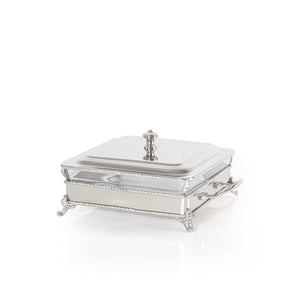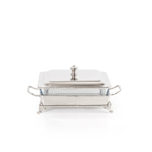 Square Silver Stainless Steel Chafing Dish with Interior Glass Bowl