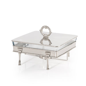 Square Silver Stainless Steel Chafing Dish with Interior Glass Bowl and Handle