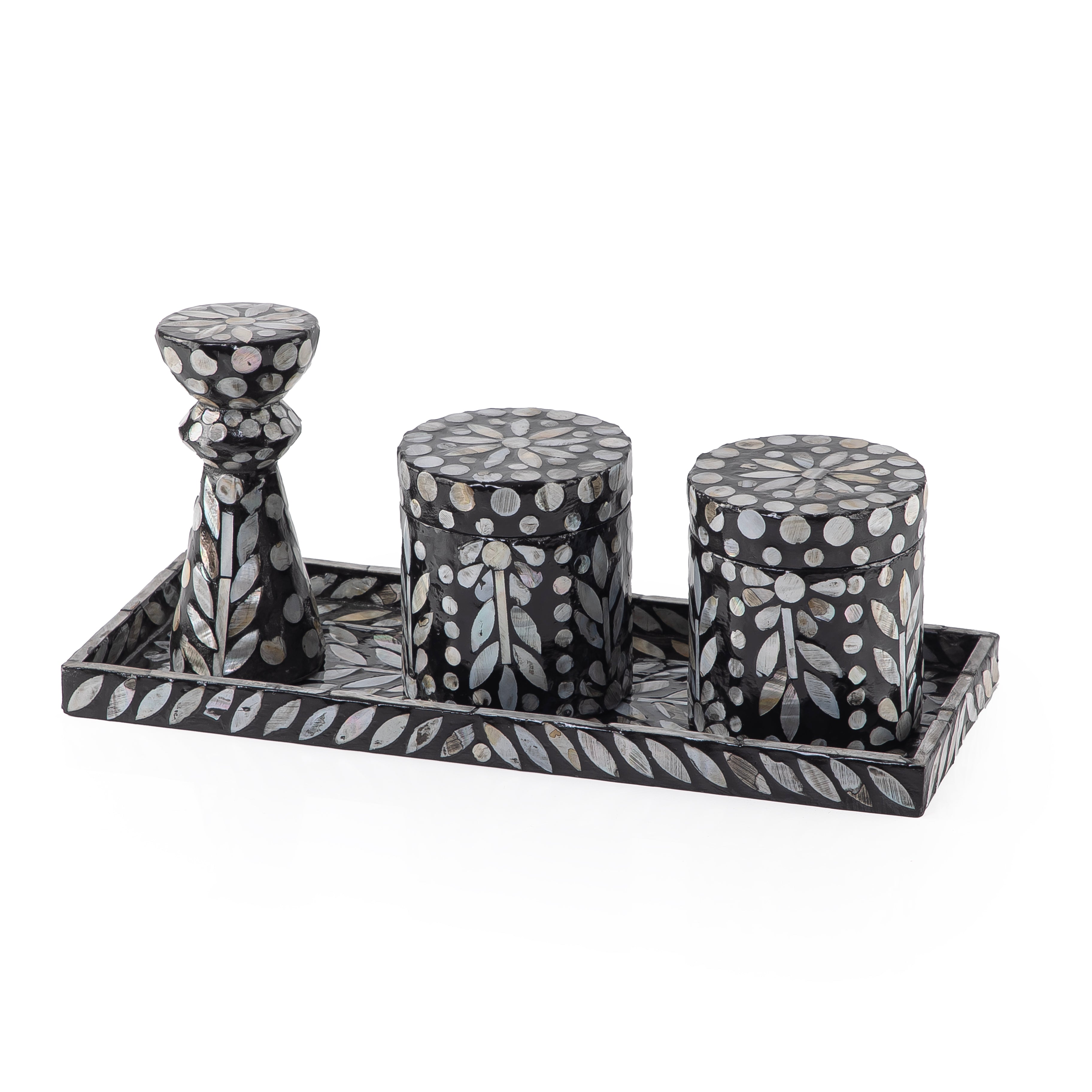 Chose the option: Set of 3 mother of pearl ( 2 jars , Decorative piece , tray) - black