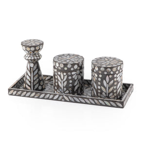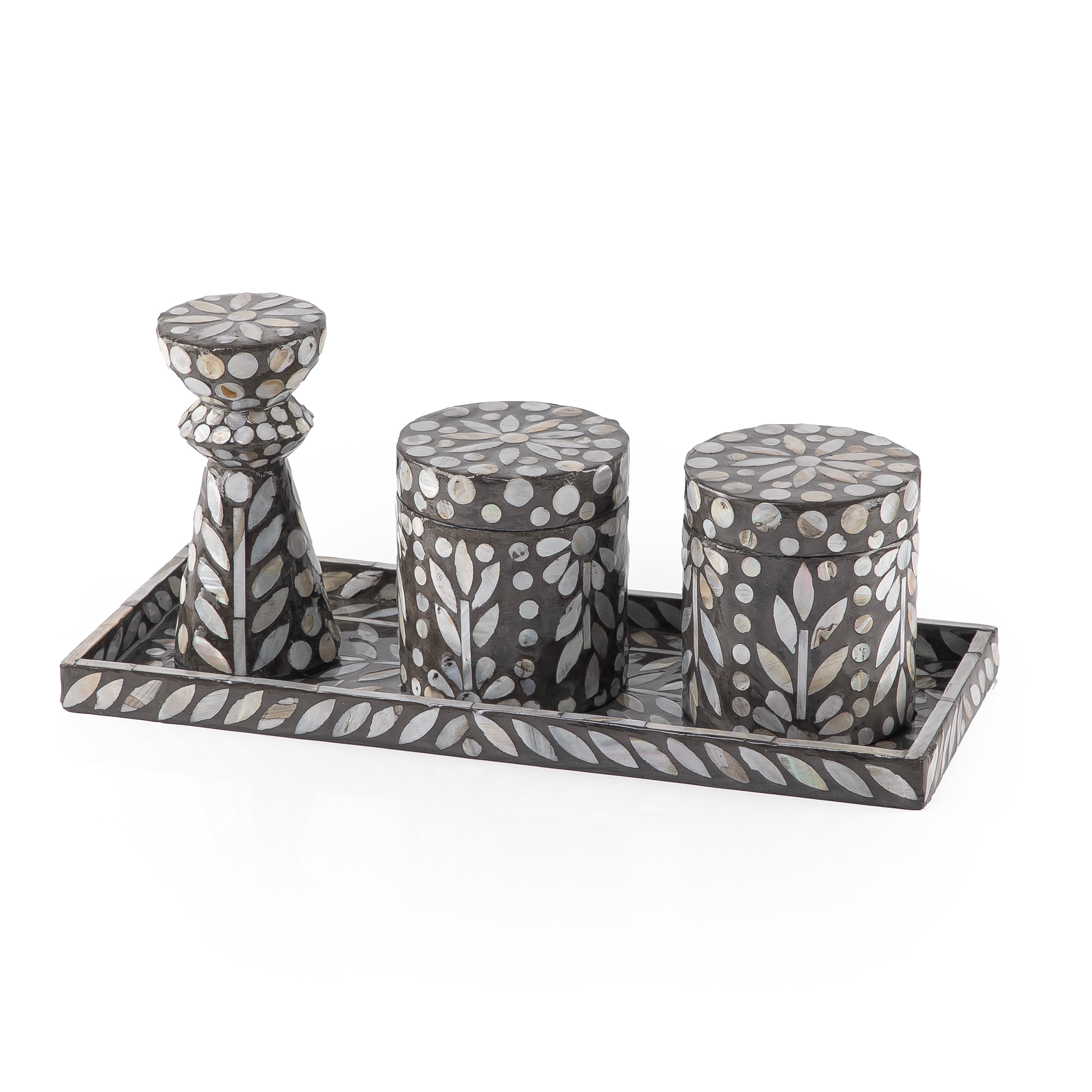 Set of 3 mother of pearl ( 2 jars , Decorative piece , tray) - grey