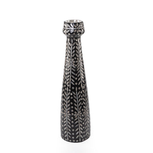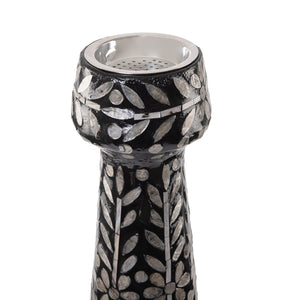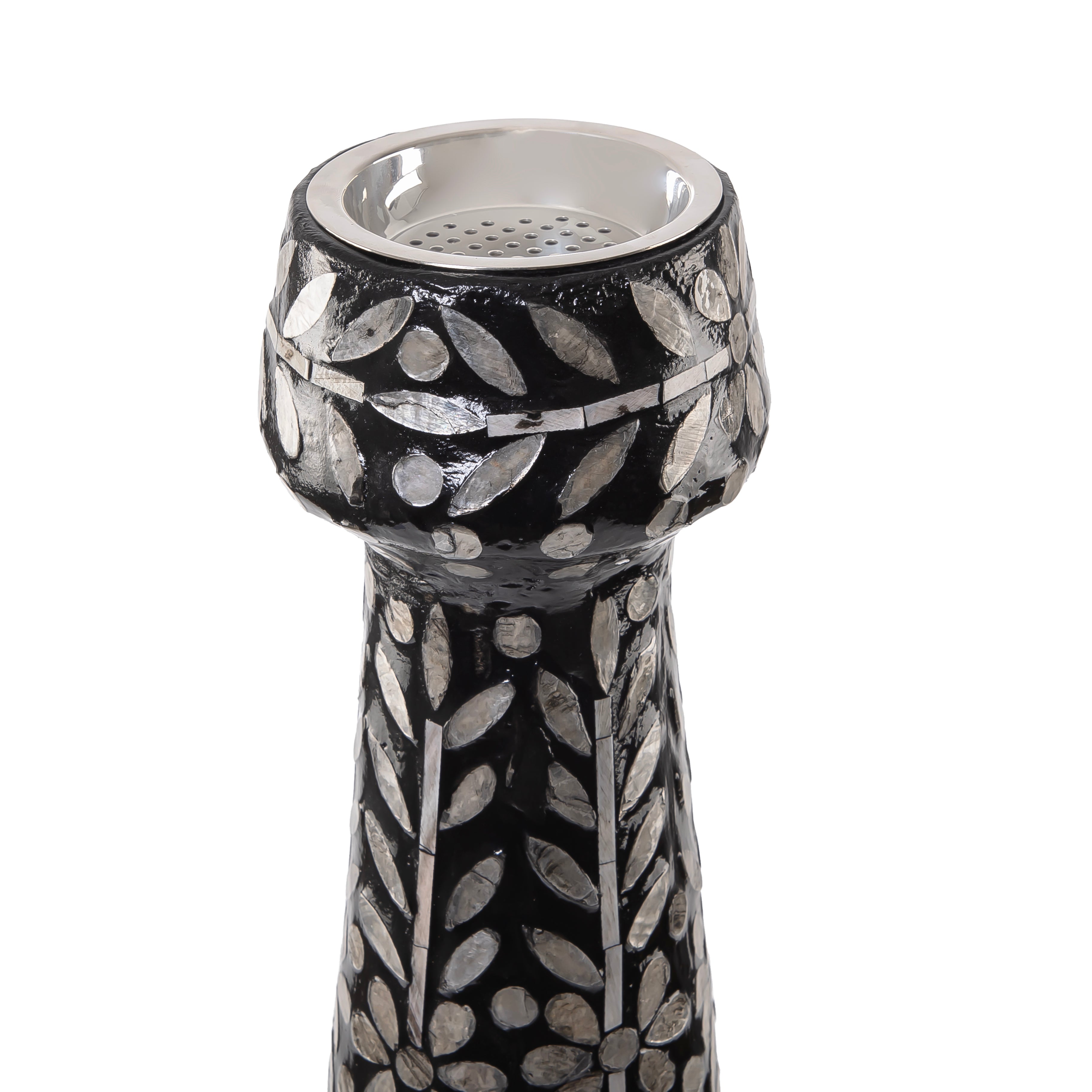 مبخرة أسطوانية الشكل بطول مميز، مصنوعة من الصدف الطبيعي، مع قاعدة مزخرفة وقطعة معدنية علوية مخصصة لحرق البخور.