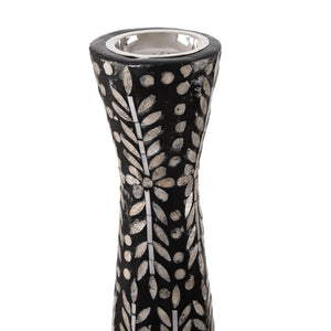 مبخرة أسطوانية الشكل بطول مميز، مصنوعة من الصدف الطبيعي، مع قاعدة مزخرفة وقطعة معدنية علوية مخصصة لحرق البخور.