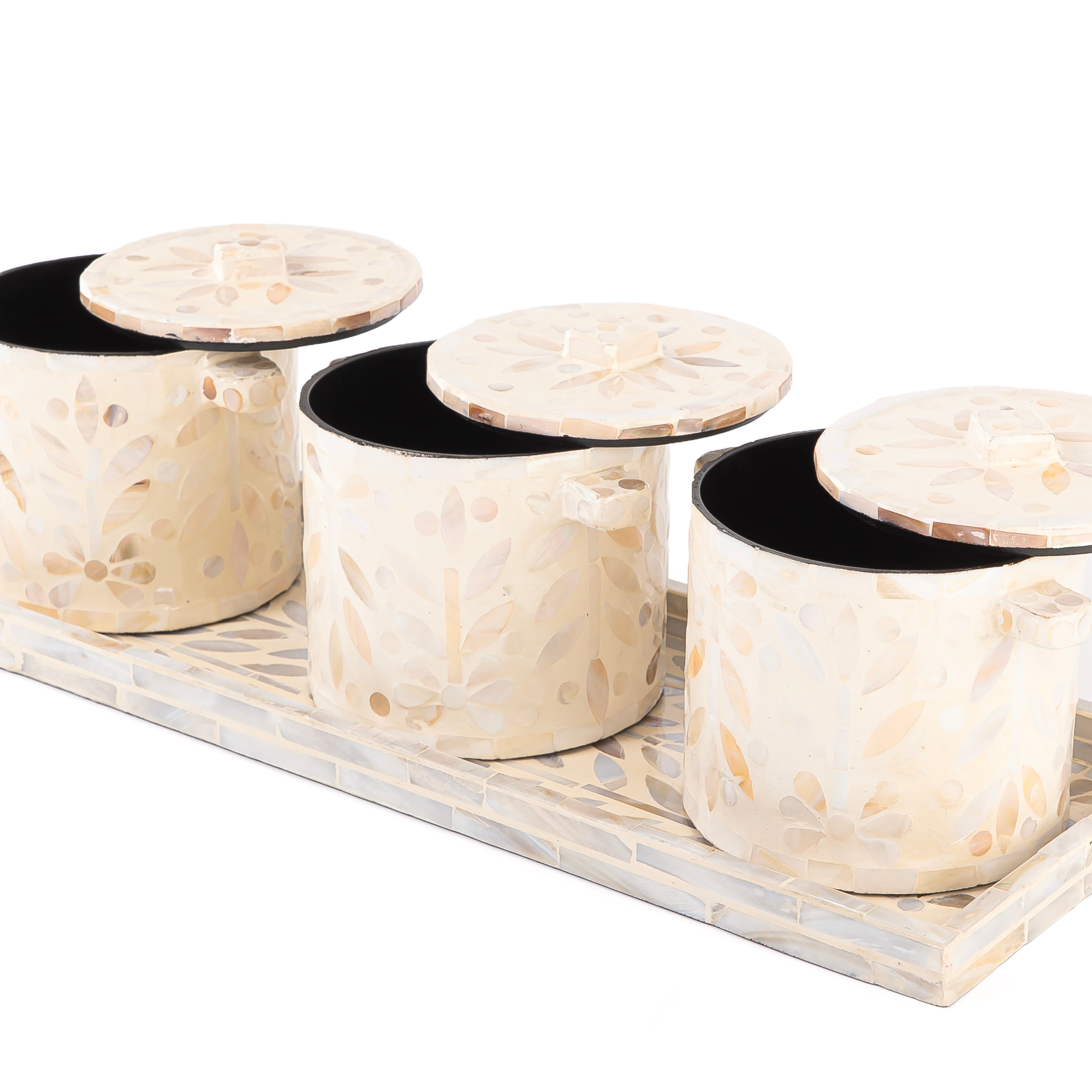 طقم من 3 علب صدف بأغطية مع صينية تقديم