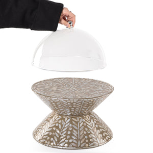استاند كيك من الصدف بتصميم مزدوج مع غطاء أكريليك - كبير