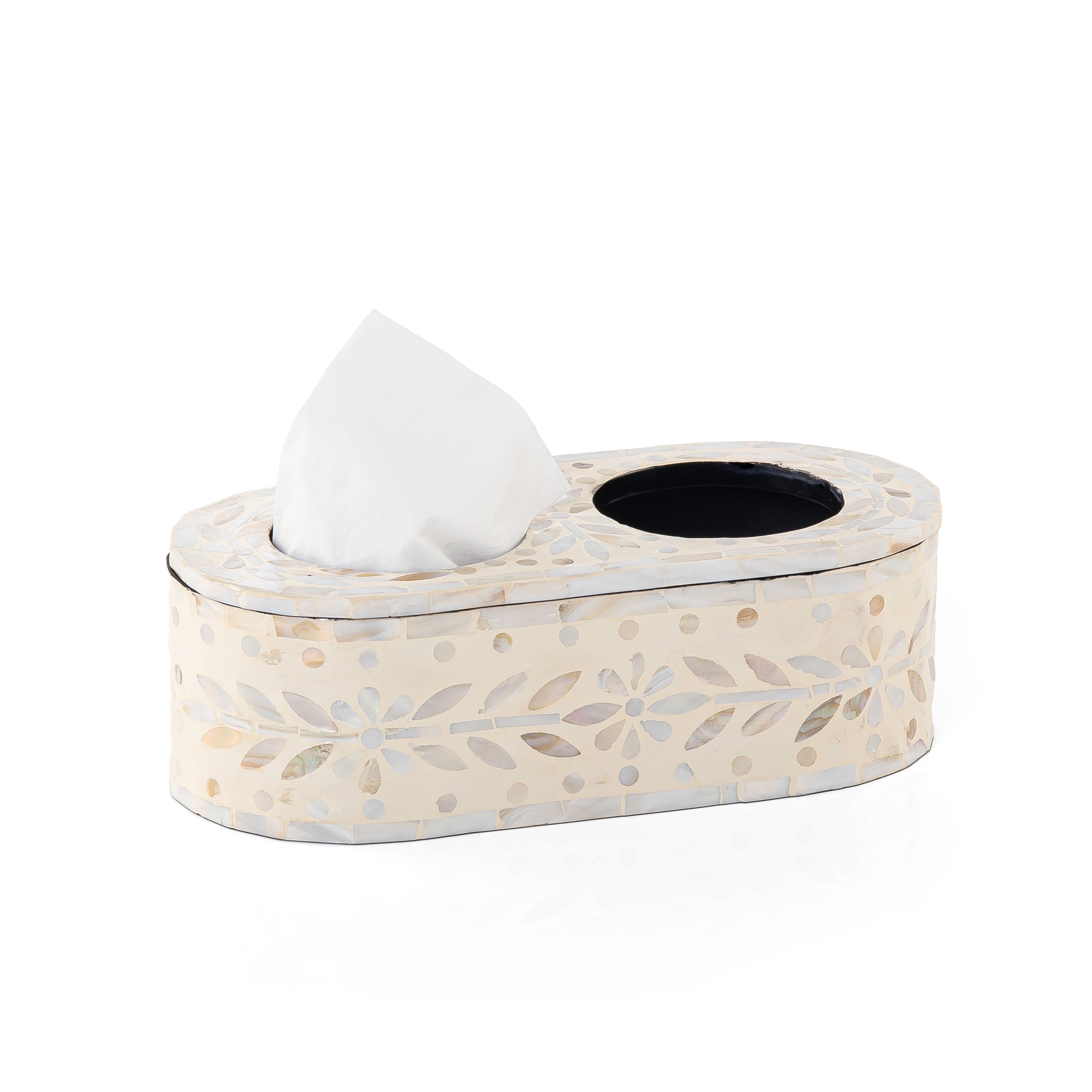 علبة مناديل مصنوعة من الصدف الطبيعي، تتميز بفتحتين لتعدد الاستخدامات.