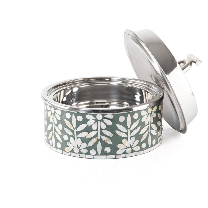 اجمع بين الفخامة والأداء العملي مع حافظ حرارة الطعام المصنوع من الصدف من الخارج والإستانلس ستيل من الداخل. يتميز هذا المنتج بتصميم أنيق يمنح مائدتك لمسة من الرقي، مع أداء عالي الكفاءة للحفاظ على حرارة الطعام لفترات طويلة.