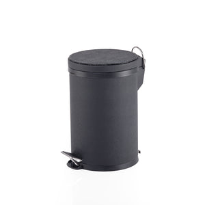 سلة نفايات فخمة من المعدن بتلبيسة جلد اسود - وسط