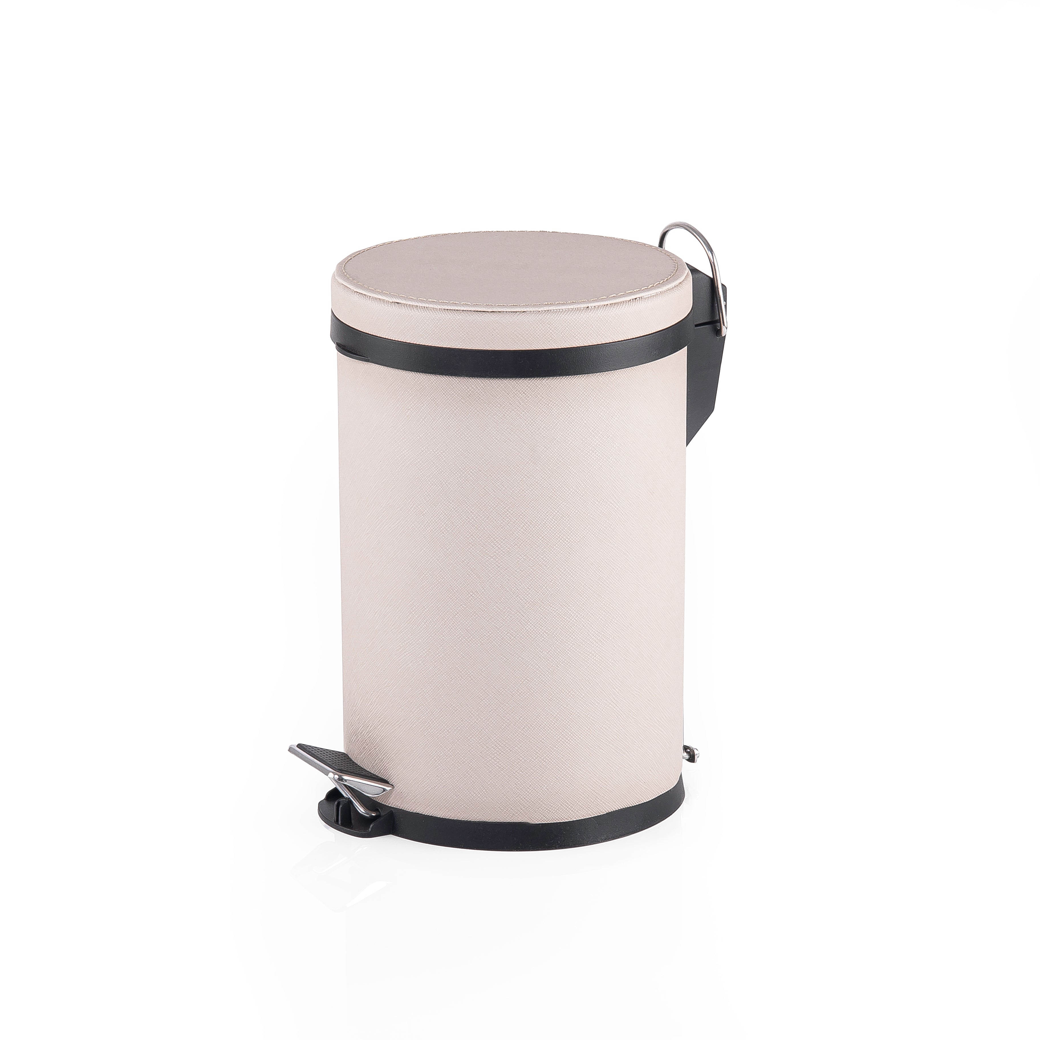 سلة نفايات فخمة من المعدن بتلبيسة جلد بيج - وسط