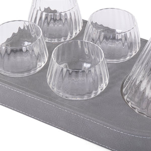 طقم صينية تقديم من الخشب بتلبيسة جلد مع 4 أكواب وإناء وبوكس هدية - رمادي فاتح