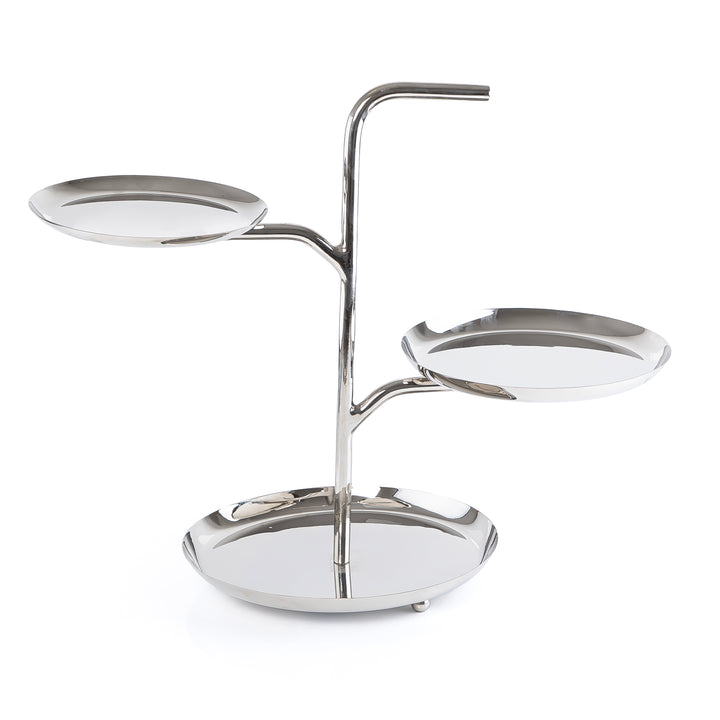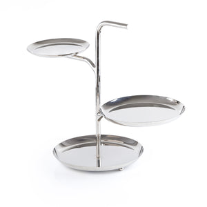 ارتقِ بعرض مائدتك مع هذا الحامل الأنيق ثلاثي الطبقات المصنوع من المعدن المصقول.
