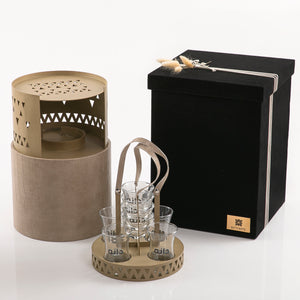 طقم منقل معدني مع حامل فناجيل وشاي وقاعدة جلدية مع بوكس هدية