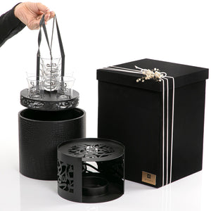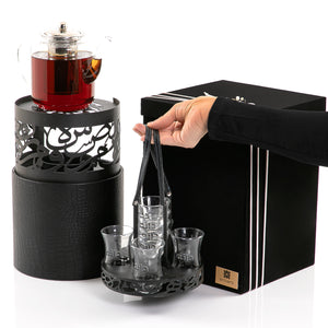 طقم منقل معدني مع حامل فناجيل وشاي وقاعدة جلدية مع بوكس هدية