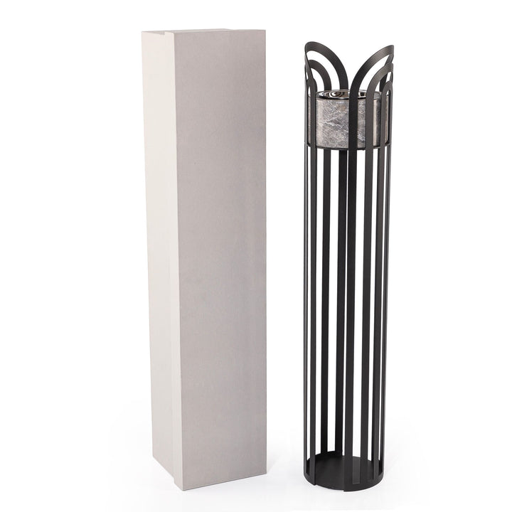 أضف لمسة من الفخامة إلى منزلك مع هذه المبخرة المصممة بشكل عمودي أنيق من المعدن الأسود، والمزودة بقاعدة دائرية من الرخام الرمادي تضفي طابعًا راقياً وعصريًا. تأتي داخل علبة هدايا فاخرة، مما يجعلها خيارًا مثاليًا للإهداء أو كقطعة ديكور مميزة تزين أي زاوية في منزلك.