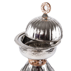 With a 3-liter capacity, this chafing dish is ideal for serving main courses, rice, pasta, and hot dishes at hotels, events, Ramadan gatherings, and formal occasions. Its sturdy construction ensures long-lasting performance, while the spacious round design allows for efficient and attractive food presentation.