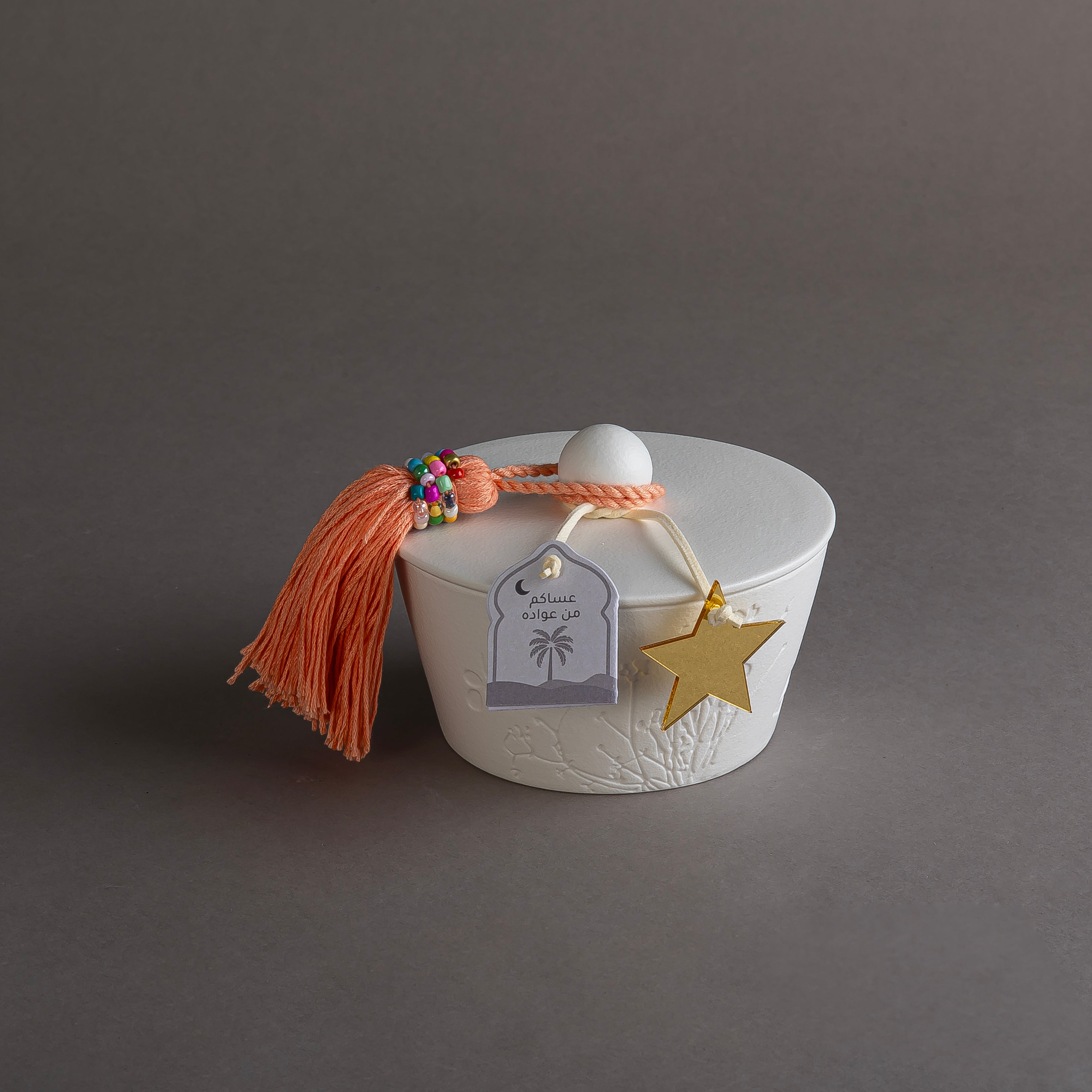 وعاء قرقيعان سيراميك أبيض - خوخي