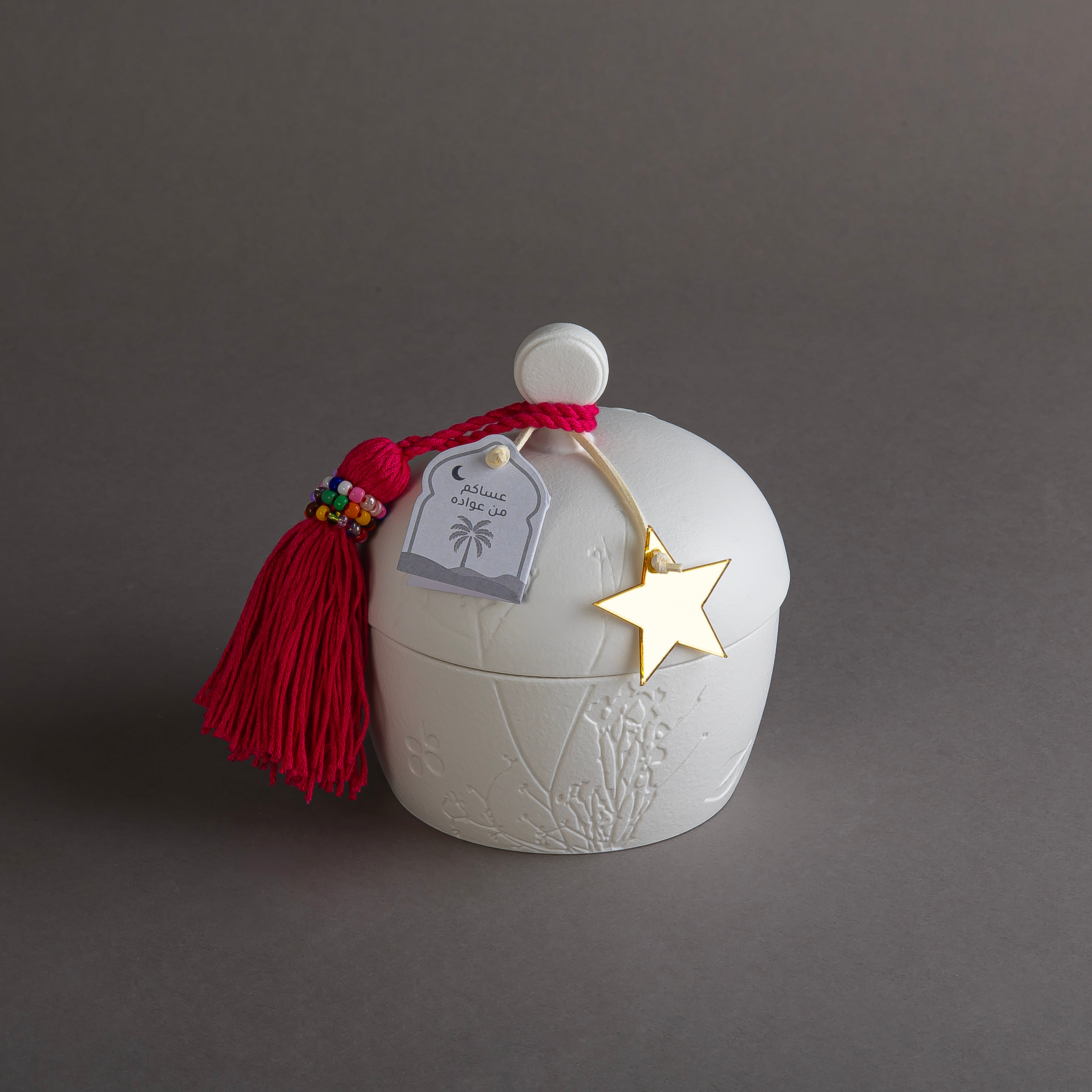 نقدم لكم وعاء القرقيعان الخزفي - الإضافة المثالية لاحتفالاتكم المميزة! صُممت هذا الوعاء الخزفي الرائع لحفظ تشكيلة متنوعة من الحلويات والشوكولاتة، ليضفي لمسة من الأناقة والفخامة على مناسباتكم. صُنع هذا الوعاء بعناية فائقة بالتفاصيل، وهي الطريقة الأمثل للارتقاء بضيافتكم.