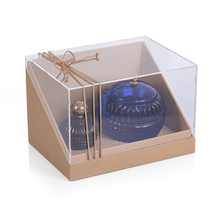 تحتوي على مبخرة وزجاجة عطر مميزة، محفوظة بغطاء أكريليك شفاف يعزز من جمال التصميم ويحمي المحتويات.